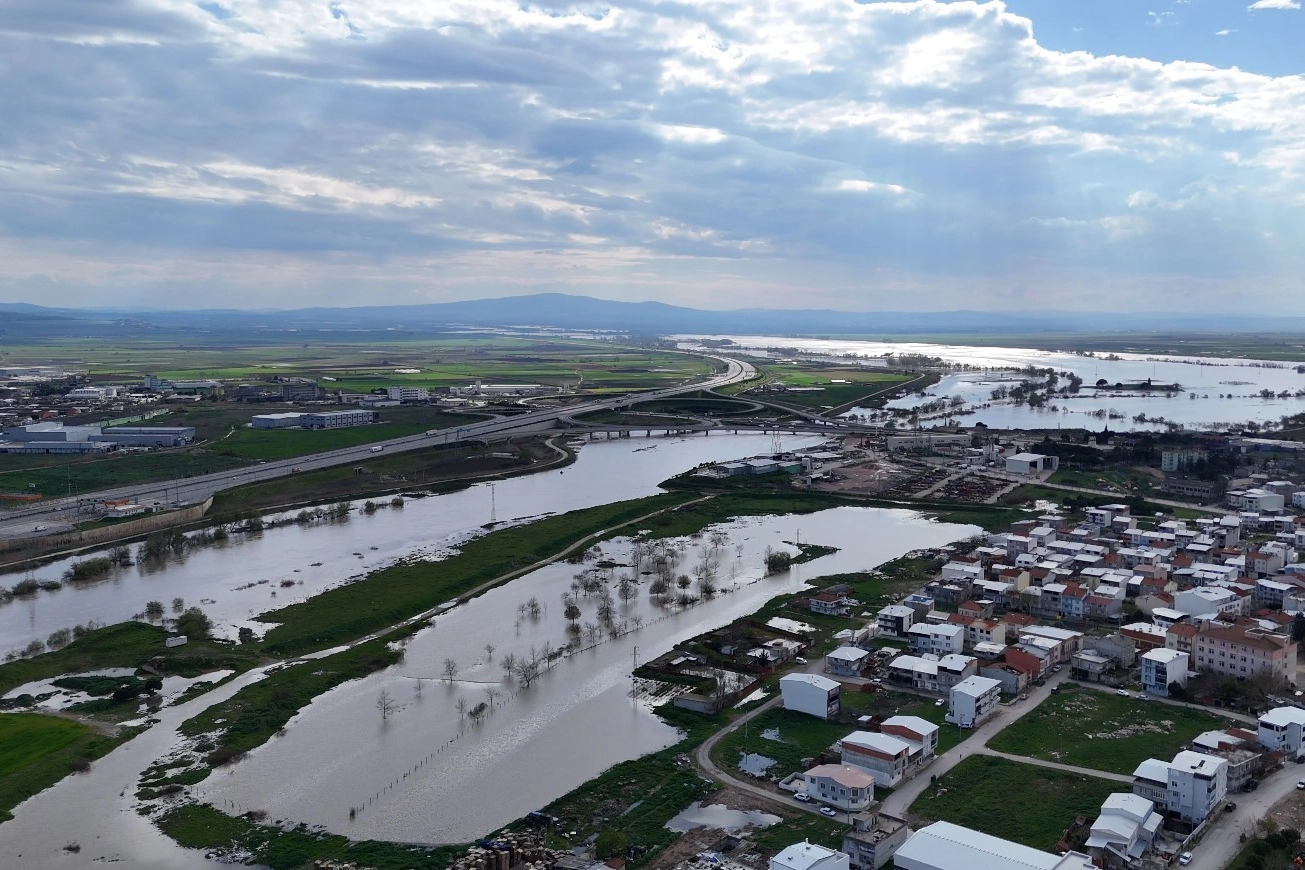 Bursa istikametinden Bandırma istikametine devam eden otoyol, suyla kaplanan ovayı tam ortadan ikiye böldü. Su altında kalan tarım arazilerinin dronla çekilen görüntüleri, taşkının etkilerini gözler önüne serdi.