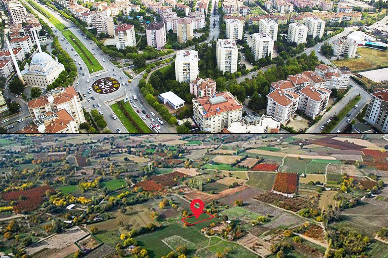 Görsellerde, Kayapa'nın 14 yılda verimli tarım arazilerini betona kaptırdığı görülüyor.