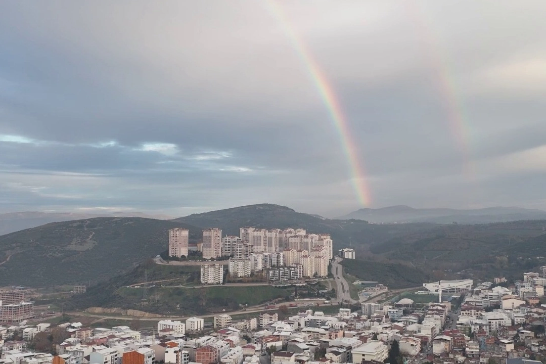 Bursa’nın Kestel ilçesi semalarında, herhangi bir yağış olmamasına rağmen oluşan gökkuşağı ilgiyle izlendi.