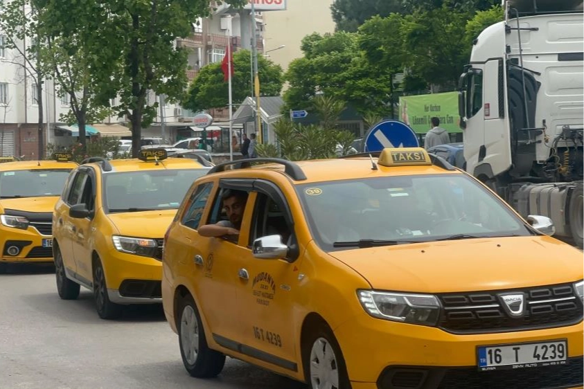 Taksi ve minibüs şoförleri, Mudanya ilçesinde tur attı. Mudanya Adalet Sarayı'nın önünden geçen taksiciler kornalar ile durumu protesto etti.