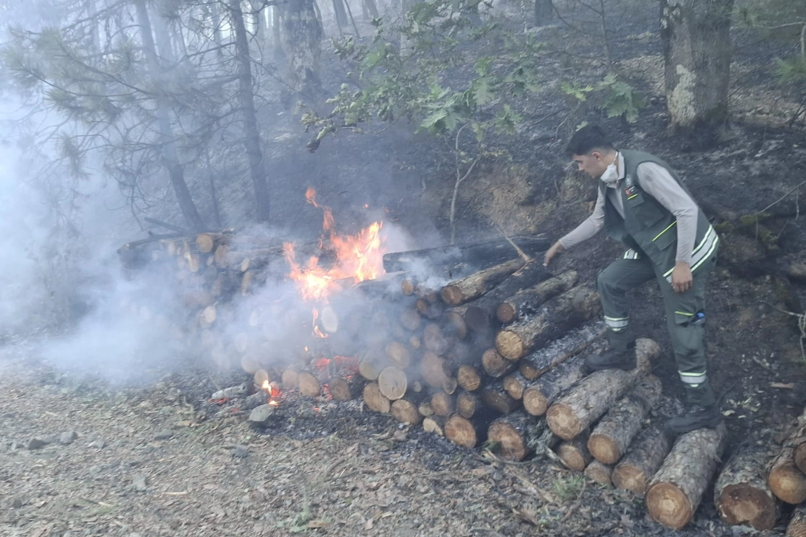 Mustafakemalpaşa Cumhuriyet Savcılığı’nın yürüttüğü soruşturma kapsamında İlçe Jandarma Komutanlığı ekipleri, yangına ilişkin 9 kişiyi gözaltına aldı. Yapılan incelemede, şüphelilerden Onur Akın’ın (26) kesim yaptığı motorlu testerenin egzozundan sıçrayan kıvılcımın yangına neden olduğu belirlendi. Jandarmadaki işlemlerinin ardından şüpheliler adliyeye sevk edildi. Şüphelilerden B.G. (16) savcılık ifadesinin ardından serbest bırakıldı.