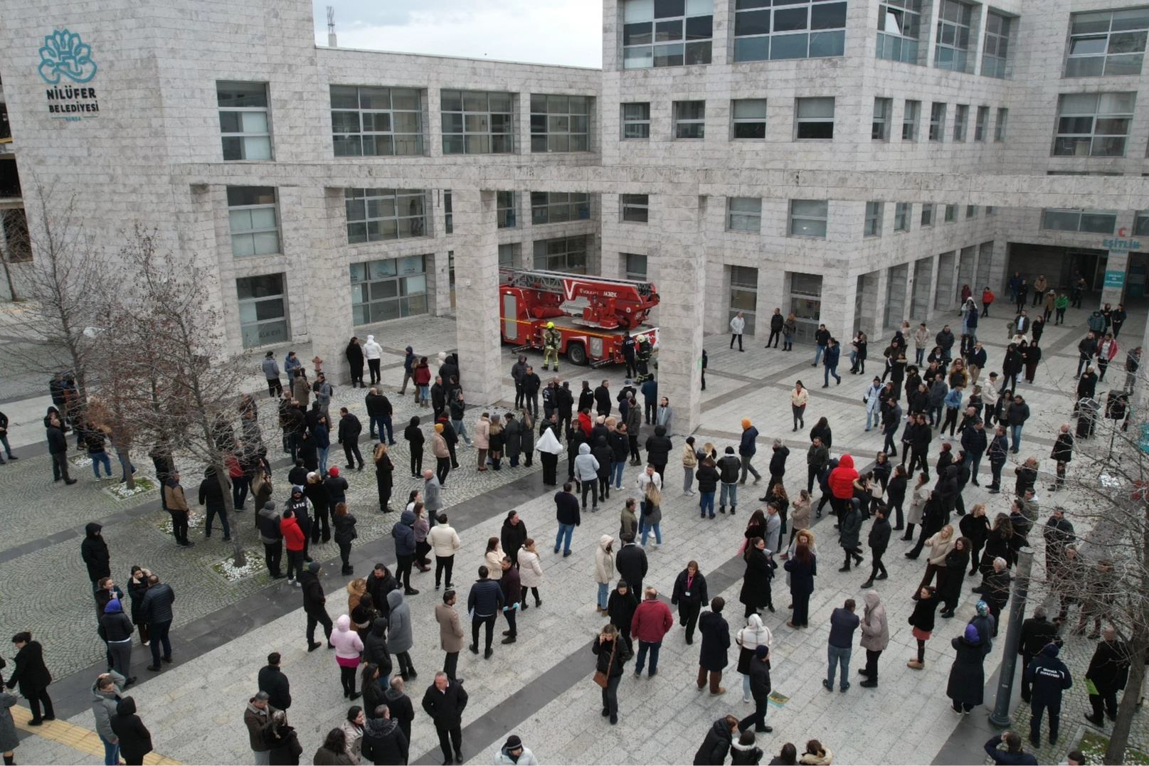 Bursa'nın Nilüfer Belediyesi, hem çalışanları hem de vatandaşları, afetlere karşı bilinçlendirmek ve farkındalık oluşturmak amacıyla çalışmalarını sürdürüyor. Bu kapsamda Nilüfer Belediyesi'nde gerçeği aratmayacak bir yangın tatbikatı gerçekleştirdi. Çalışanlara haber verilmeden yapılan yangın tatbikatında Nilüfer Belediyesi Halk Evi Binası'nda saat 16.00'da ‘Acil durum' sirenleri çalmaya başladı. Zemin katta çıkan yangın nedeniyle acil durum ekipleri, acil çıkış noktalarını kullanarak tahliye işlemi başlattı. Bu sırada da herkesin binayı terk etmeleri yönünde de anons yapıldı. Bina içerisinde bulunan Nilüfer Belediye Başkanı Şadi Özdemir, başkan yardımcıları, meclis üyeleri, çalışanlar ve vatandaşlar acil çıkış noktalarını kullanarak, binadan çıktı. Tahliye işlemi sırasında yapılan ihbarla olay yerine Bursa Büyükşehir Belediyesi İtfaiye Daire Başkanlığı'ndan ekipler, Nilüfer Arama Kurtarma (NAK) ekipleri ve 112 Acil Servis ekipleri intikal etti. Birinci kattan yayılan dumandan etkilenen bir vatandaş NAK ekibi tarafından çıkarıldı. Binanın çatısında mahsur kalan bir vatandaşa da itfaiye ekipleri müdahale etti. Yaralılar, sağlık ekiplerine teslim edilerek, ilk müdahaleleri yapıldı.