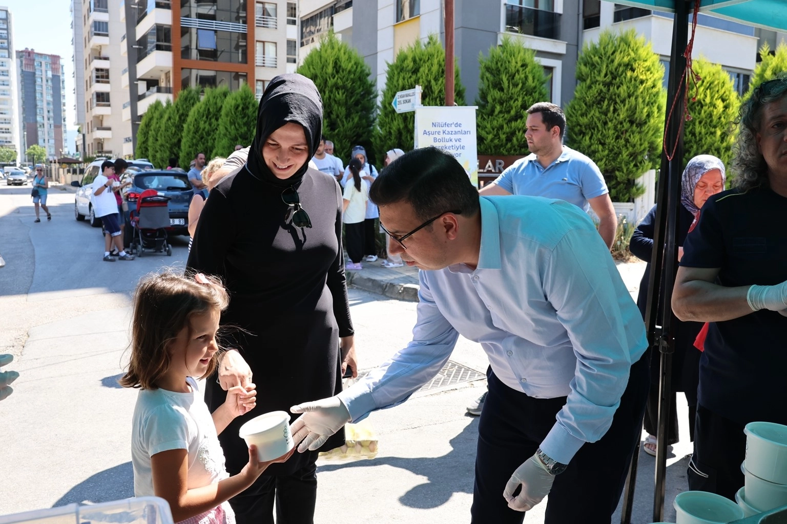 Nilüfer Belediyesi, paylaşma ve bereket ayı olan Muharrem ayının manevi atmosferini tüm kente yaymak amacıyla geleneksel hale getirdiği aşure dağıtımlarına bu yıl da devam ediyor. Nilüfer Belediyesi bu kapsamda, 25 Temmuz’a kadar 30 mahallede vatandaşlara aşure ikram edecek. Aşure geleneğini Nilüfer'in dört bir yanında yaşatmayı hedefleyen dağıtımlara Nilüfer Belediye Başkan Yardımcısı Okan Şahin, Nilüfer Belediye Meclis Üyeleri ve Nilüfer Belediye Başkanı Şadi Özdemir’in eşi Nuray Özdemir de katıldı. Aşure dağıtımlarının ilk günlerinde Esentepe, 23 Nisan, Özlüce, Cumhuriyet, Ertuğrul ve 30 Ağustos Zafer mahallelerindeki dağıtımlarda bu anlamlı günlerin bolluk ve bereketi vatandaşlarla paylaşıldı.
