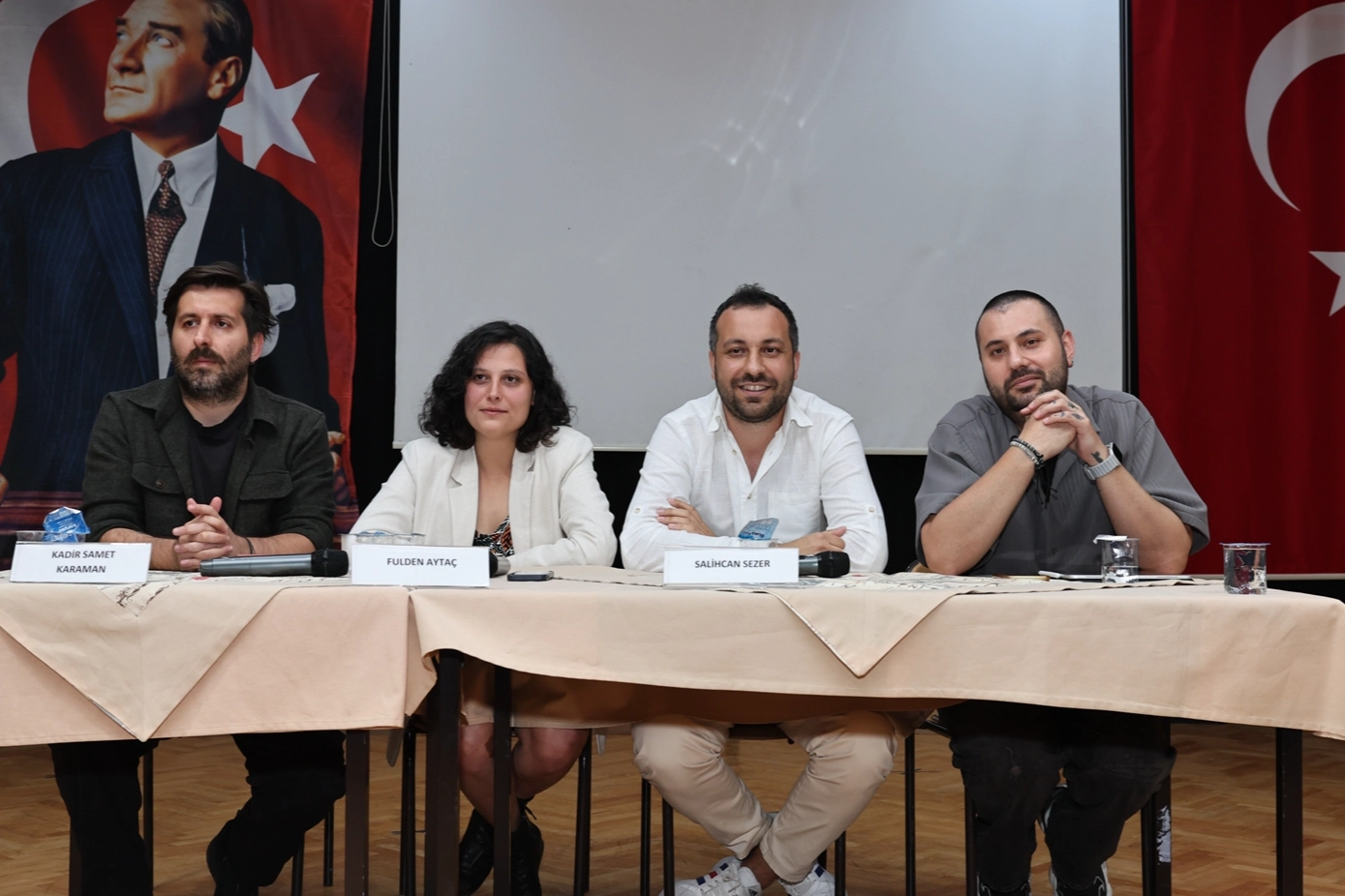 NKT tarafından düzenlenen “Oyun Yazma Programı 2024” kapsamında ana seçkiye alınan oyunların yazarları, Bursa Zeki Müren Güzel Sanatlar Lisesi Tiyatro Bölümü’nde söyleşi düzenledi. Okulun salonunda gerçekleşen söyleşiye öğrenciler ve öğretmenler yoğun ilgi gösterdi. Nilüfer Belediyesi Kent Tiyatrosu Sahne Direktörü M. Burak Dikilitaş’ın moderatörlüğünde gerçekleşen söyleşide, Kadir Samet Karaman, Fulden Aytaç ve Salihcan Sezer, yazmaya nasıl başladıklarını ve oyun yazma atölyelerindeki deneyimlerini katılımcılarla paylaştı.