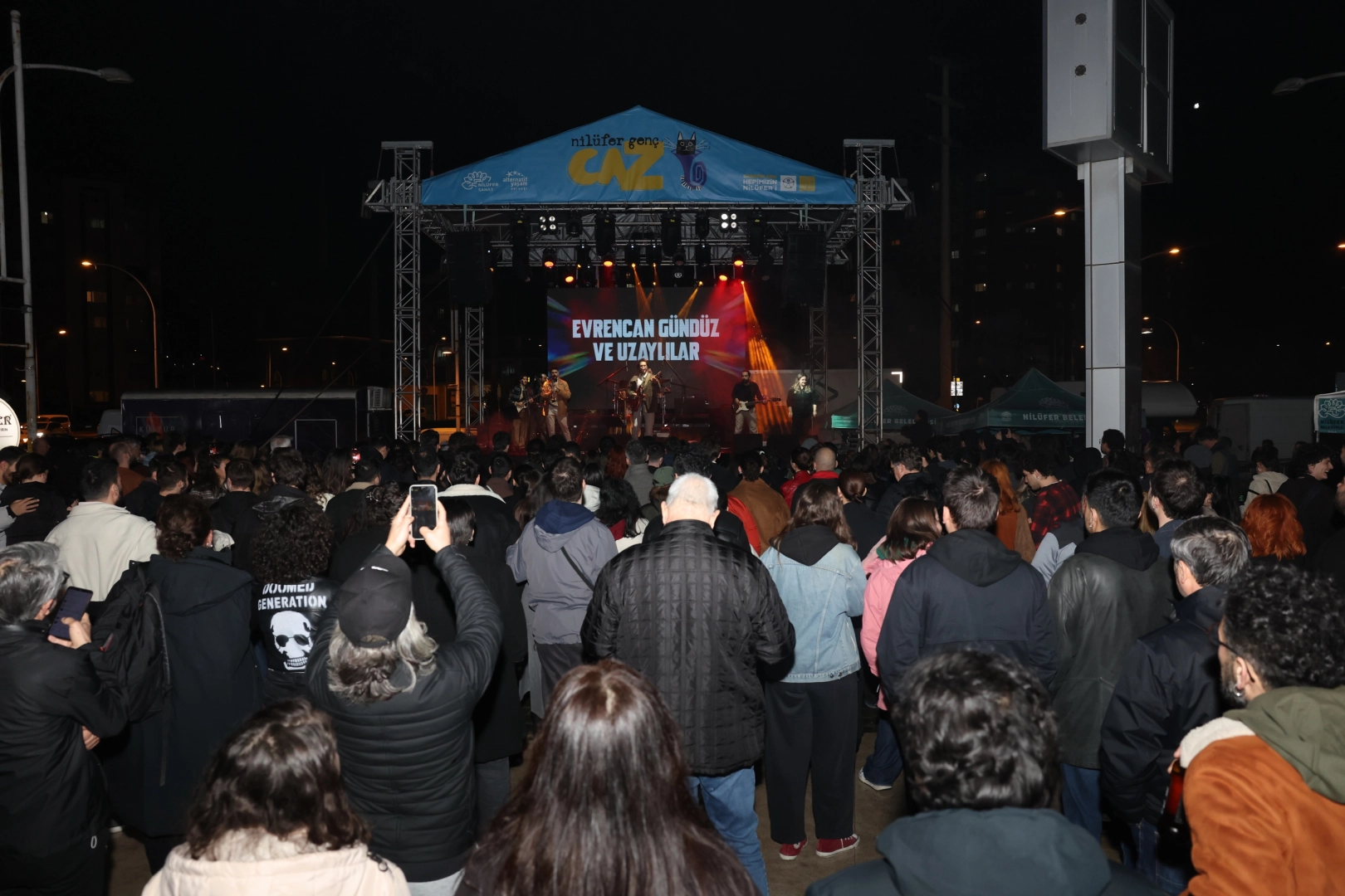 Nilüfer’de dört gündür devam eden ve 15’ten fazla sanatçının sahne aldığı Nilüfer Genç Caz konserleri, yoğun katılımlı bir finalle tamamlandı. Etkinliğin son gününde sahneye çıkan sevilen sanatçı Evrencan Gündüz ve grubu Uzaylılar, performanslarıyla izleyicilerden tam not aldı. Nazım Hikmet Kültürevi önünde düzenlenen konseri, Nilüfer Belediye Başkanı Şadi Özdemir ve eşi Nuray Özdemir de vatandaşlarla birlikte izledi.