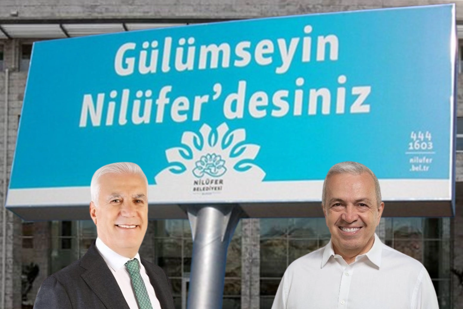 Nilüfer Belediye Başkanı Şadi Özdemir, sosyal medya hesabından önceki dönemlerden kalma "Gülümseyin, Nilüfer'desiniz" sloganı yazan bilboardlarının yenilendiği anları paylaştı.