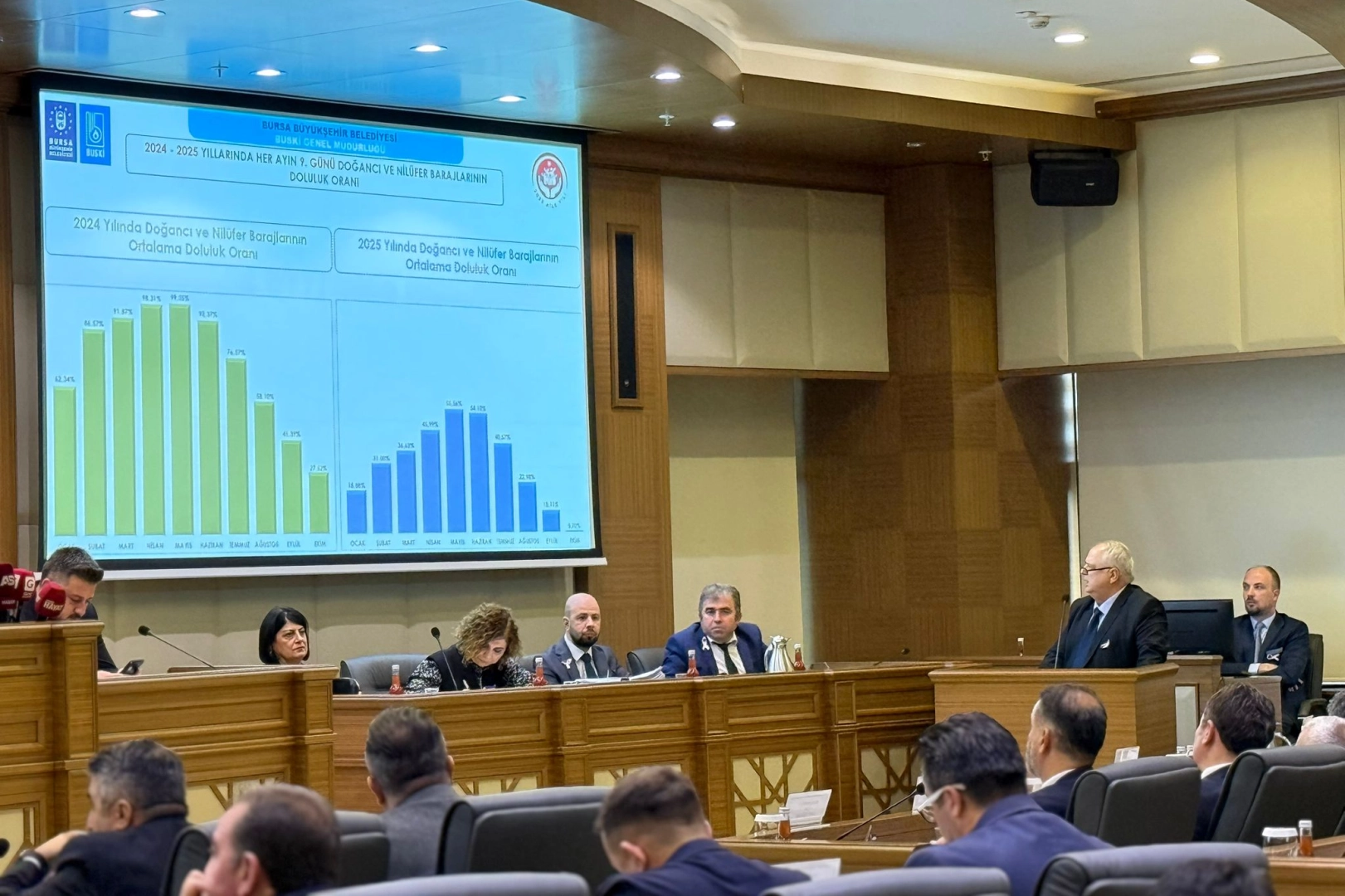 BUSKİ Genel Müdürü Mehmet Ercihan Şubaşıoğlu, meclis başında barajlardaki su doluluğu hakkında bilgilendirmelerde bulundu.