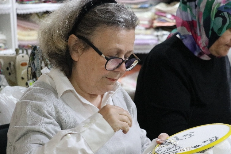 Özyürek, hediyelik eşya ürettiklerini vurgulayarak, "Bunların nakşı, işlemesi, dikişi kutulanması derken hepsi ayrı bir iş olduğu için bu alanlarda hep farklı farklı kişiler çalışıyor." ifadesini kullandı.