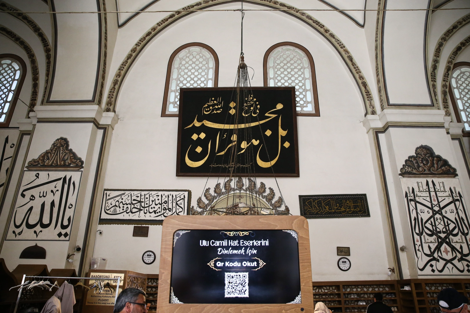 "Caminin üç kapısının girişindeki ekranlara karekod (QR) koymak suretiyle camide bulunan 110 hattın tamamının kimler tarafından yazıldığını, anlamının ne olduğunu tarihçesiyle birlikte dijital ortamda hazırladık. Çağımız teknoloji çağı. Hem Ulu Cami'yi teknolojiyle buluşturmak hem de gençlerimiz Ulu Cami'ye girdiklerinde camideki bu hat sanatlarını sadece seyretmekle kalmasın istedik. Ecdadımızın yazdıklarıyla yeni neslimizi buluşturmayı amaçladık. Bu amaçla ziyaretçiler 110 hat yazımızın tarihçesini, anlamını Türkçe sesli olarak da dinleyebildikleri gibi yazılı olarak da bunu görebilecekler."