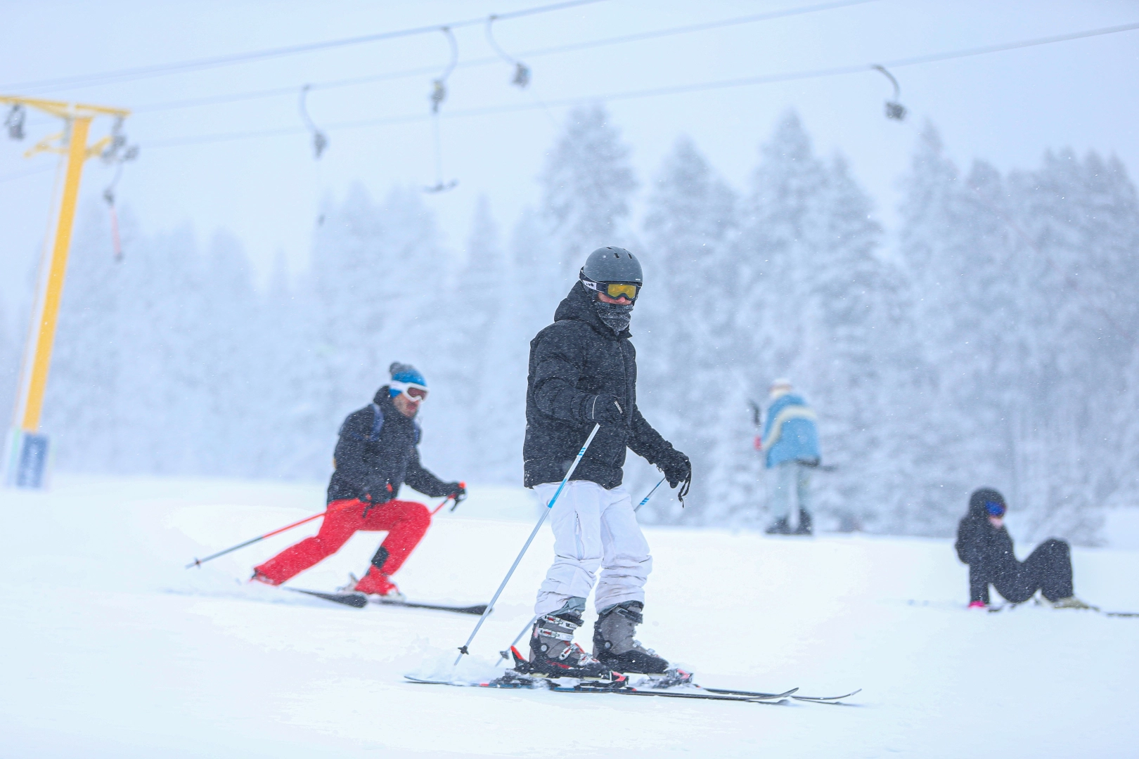 Kar yağışını fırsat bilen yerli ve yabancı tatilciler, kayak ve snowboard yapıp kar topu oynayarak eğlenceli vakit geçiriyor.