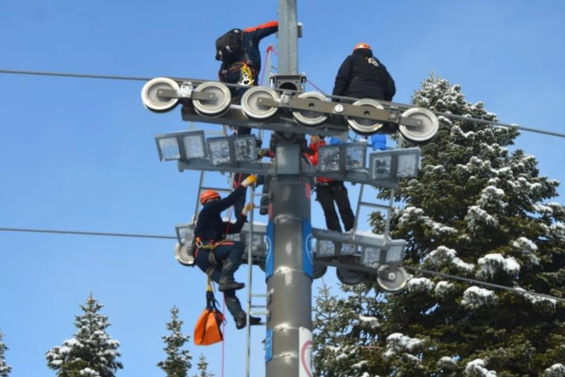 Uludağ'ın karla kaplı bölgesinde 35 AFAD ve 2 tim JAK ekibi, duran telesiyejdeki kişileri sağlıklı bir şekilde yere indirmek için akrobatları aratmayacak şekilde tellerde ilerledi. Mahsur kalanlara ulaşan ekipler, onları sağlıklı bir şekilde indirmek için gereken bütün önlemleri aldı.