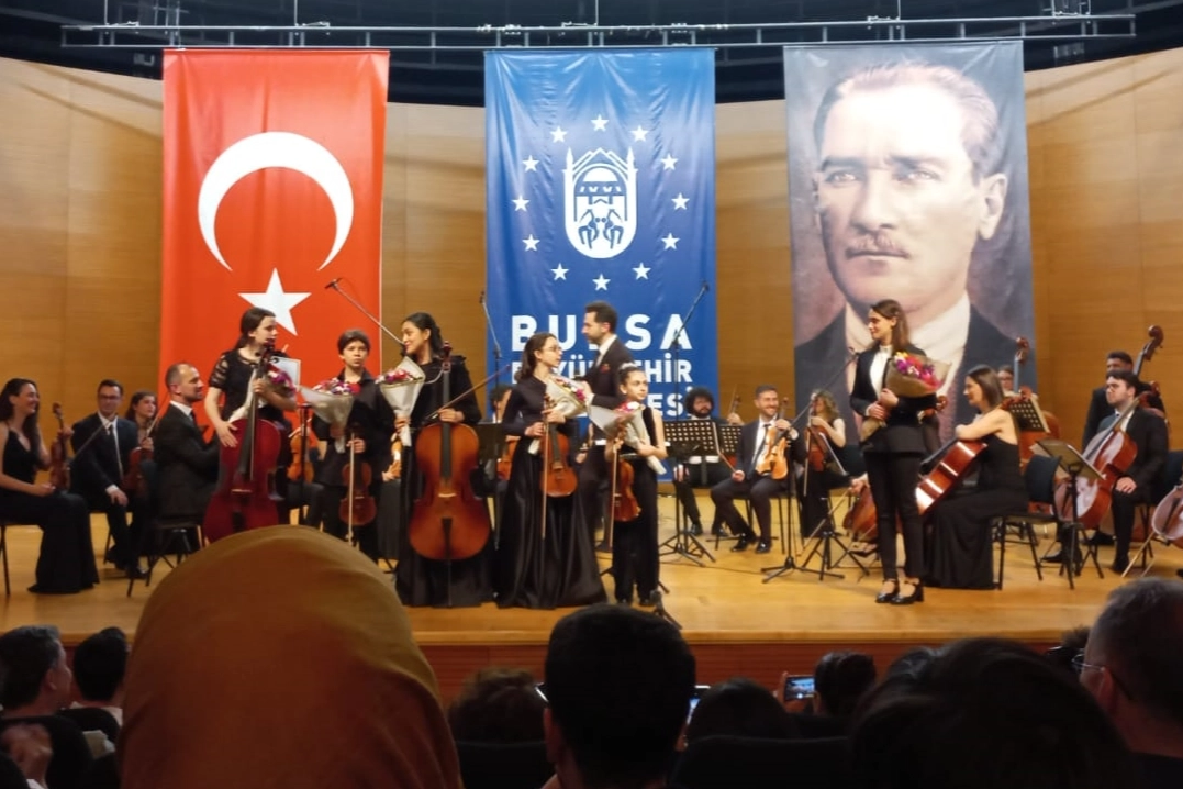 Bursa Büyükşehir Belediyesince "Bursa'da Zaman Sanat Zamanı" etkinlikleri kapsamında Merinos Atatürk Kongre ve Kültür Merkezi'nde gerçekleştirilen konseri, şef Elif Ceyda Sert yönetti.