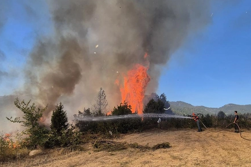 İddiaya göre, piknik yapan ailenin mangalından sıçrayan kıvılcımlar, kurumuş otları tutuşturdu. Makilik alandaki yeşillikler ve ağaçların alev aldığı yangında, ihbar üzerine olay yerine helikopter ve itfaiye ekipleri sevk edildi.