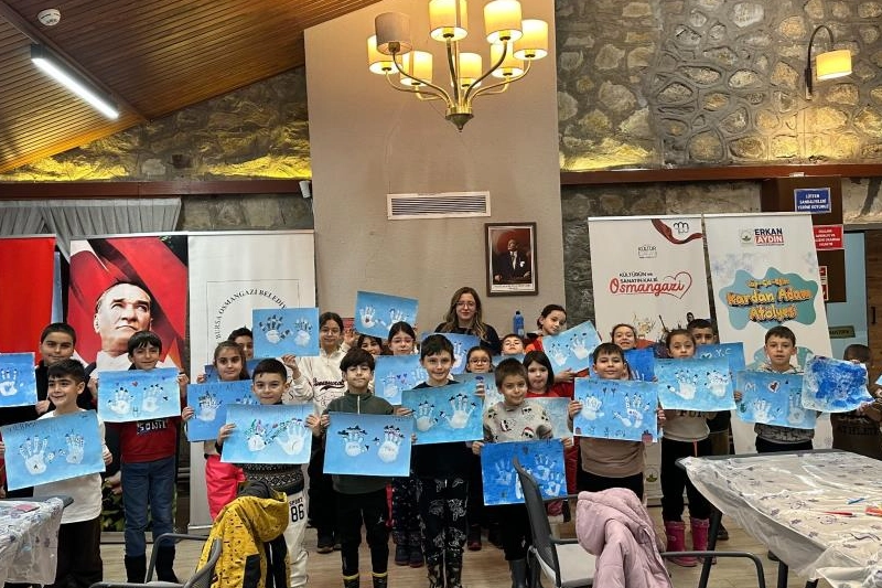 "Ebeveynlerimiz ile birlikte günlük yaşamın temposundan uzaklaştığımız, beraber vakit geçirdiğimiz, beraber aile bağlarını güçlendirdiğimiz, oyunu sanat ile birleştirdiğimiz bir etkinlik tasarladık. Hep beraber, sünger ile birlikte baskı tekniğiyle resim yapıyoruz. Ardından kirlenmek güzeldir diyerek, parmaklarımızı kirletip kardan adam ailesinin bir hikayesini oluşturuyoruz. Hem çocuklarımızın, hem de ailelerimizin el izleriyle beraber onları birer kardan adama dönüştüreceğiz. Kışın en birleştirici ve en sade ögesi kardan adam olduğu için buradan yola çıktık. Aynı zamanda yaşadığımız şehirdeki dağda hangi hayvanlar yaşıyor ve hangi bitkiler yetişiyor, birazcık da bunlara değinerek, onlara buraları tanıtmak istiyoruz." Çocuklar ise atölye boyunca doyasıya eğlendiklerini belirterek desteklerinden ötürü Osmangazi Belediye Başkanı Erkan Aydın’a teşekkür etti.