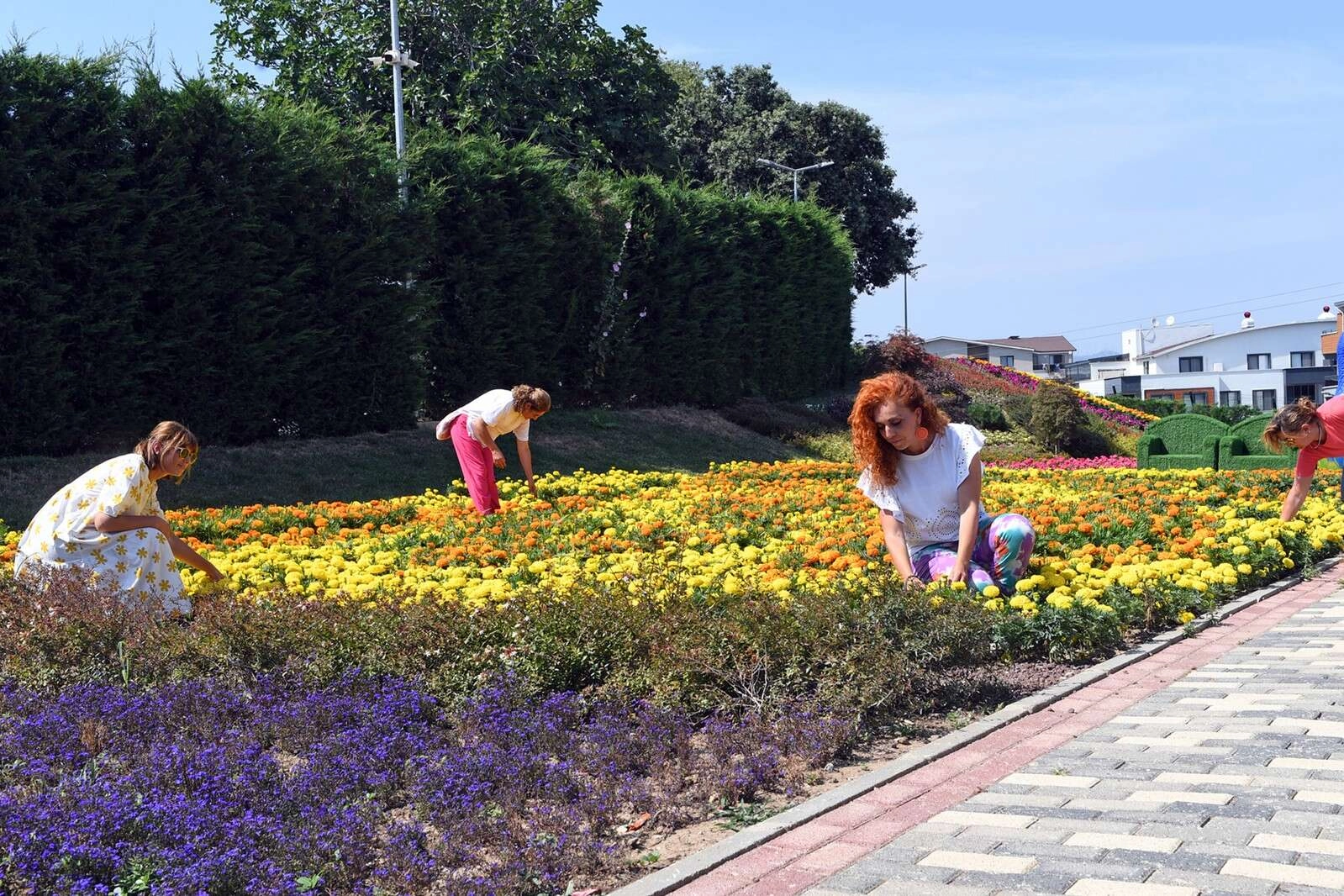 Vapur dumanı, begonya, İzmir güzeli, kadife, sardunya, petunya, ipek çiçeği, gazania, kalibroşe, zinnia, yıldız, cam güzeli, kolyoz, horoz ibiği, ateş çiçeği, lisiantus, hüsnü Yusuf, aslanağzı, şebboy, yer minesi, ekinezya, bodrum papatyası, zambak, glayör, frezya, iris, kaplan çiçeği, gala, tespih çiçeği, gün güzeli, fener çiçeği, süs şapkası, gayret çiçeği, avize çiçeği, şakayık ve ateş lalesi gibi mevsimlik çiçek ve bitkiler, görüntüsü ve kokusuyla büyülüyor.
