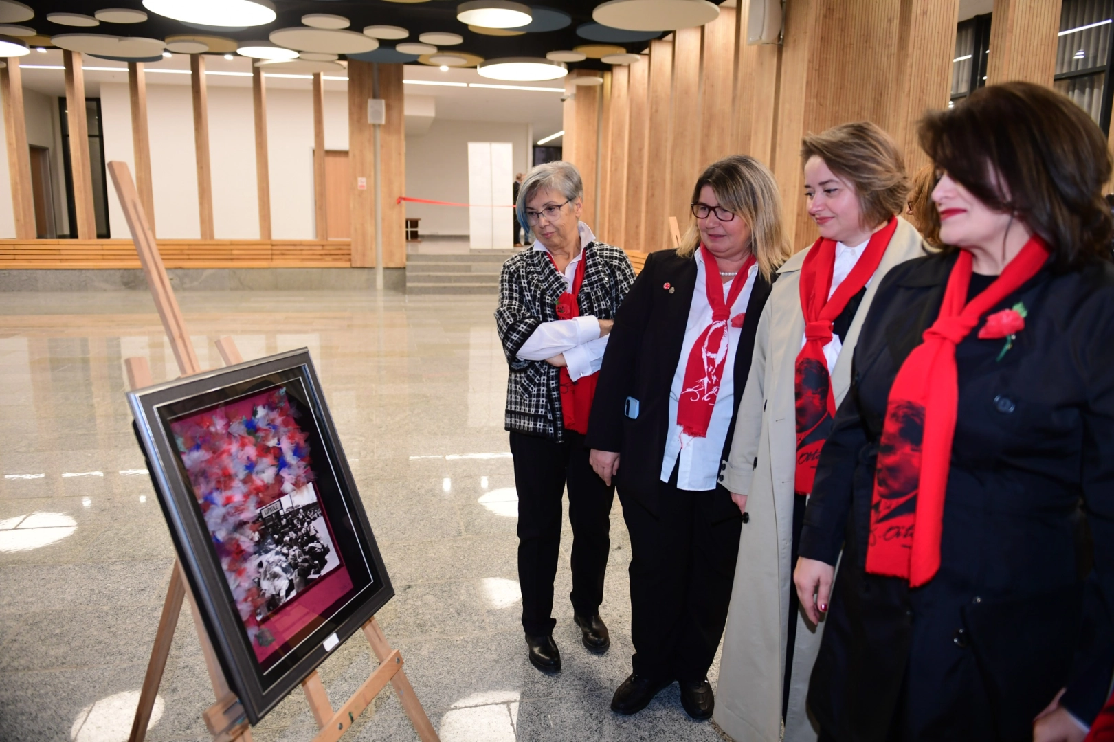 Kurdela kesiminin ardından sergiyi gezen protokol üyeleri, eserleri dikkat ile incelerken Ulu Önder Mustafa Kemal Atatürk’ü saygı ve minnet ile andı. Sergi hakkında bilgiler veren Dilber Demirkıran, 18 eserin bulunduğunu ve satıştan elde edilecek gelirin öğrencilerin bursunda kullanılacağını belirtti. Serginin ardından Bursa Uludağ Üniversitesi Doç. Dr. Hacer Karabağ Arslan, ‘Balkanlar’dan Anadolu’ya: Atatürk’ün Liderlik İnşası’ adlı söyleşi ile katılımcılara bilgilendirmelerde bulundu. Söyleşide Atatürk’ün Balkanlar coğrafyasından Anadolu’ya dek uzanan milli mücadele ruhuna ışık tutan Doç. Dr. Hacer Karabağ Arslan, Cumhuriyetin ilanı ve sonrasına ilişkin anılara perde açarak, Atatürk’ün liderliğine vurgu yaptı.
