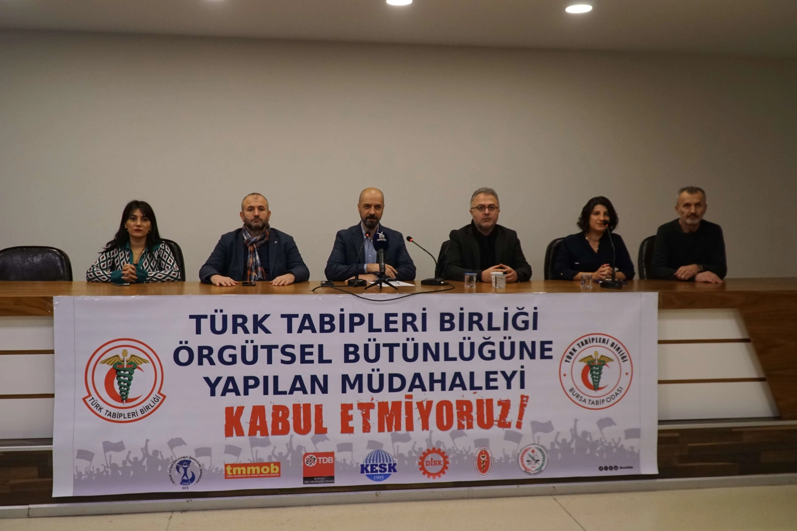 Meslek örgütleri adına Bursa Tabip Odası Başkanı Dr. Levent Tufan Kumaş bir basın açıklaması gerçekleştirdi. BTO Başkanı Dr. L. Tufan Kumaş, "TTB ve tabip odaları olarak, meslek örgütümüze yönelik baskıları kabul etmediğimizi, hekimlik değerleri, mesleki bağımsızlık ve halkın sağlık hakkı için mücadeleye devam edeceğimizi bir kez daha vurguluyoruz. Son 40 yıllık süreçte hakkında açılan davaların tamamından beraat etmiş olan TTB ve yöneticileri, bütün baskılara rağmen yaşanan bu süreçten de gücünü ve meşruiyetini artırarak çıkacaktır" ifadesini kullandı.