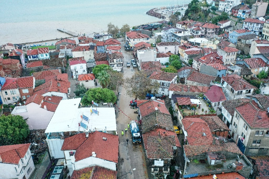 Mahallede ve sahil şeridinde su, çamur ve taş birikintileri oluştu. Sahildeki kafe ve restoranların masa ve sandalyeleri zarar gördü.