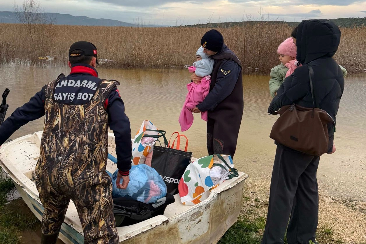 Bursa Uluabat Gölü'nde mahsur kalan aileyi jandarma kurtardı