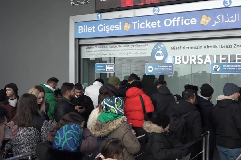 Kimi kendi aracıyla zirvenin yolunu tutarken, kimi ise araç trafiğine takılmamak ve Bursa manzarasını izlemek için teleferiğe yöneldi. Sabahın ilk saatleriyle vatandaşların akın ettiği teleferikte, metrelerce kuyruk oluştu.