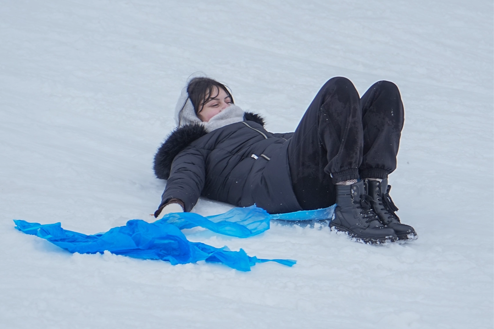 Kayak, snowboard ve telesiyej fiyatlarını yüksek bulan vatandaşlar, kendi getirdikleri poşet ve kızakla kaydı.