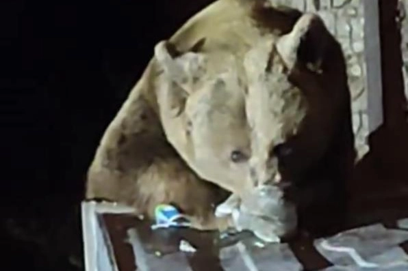 Olay, Uludağ’daki turistik konaklama alanlarının yakınında meydana geldi. Görüntülerde ayının birden fazla çöp konteynerini devirdiği ve içlerinden yiyecek aradığı net bir şekilde görülüyor.