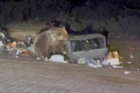 Ayılara uzaktan yiyecek atmak yerine sucuğu eliyle yedirmeye çalışan vatandaş, büyük bir tehlike ile karşı karşıya kaldı.