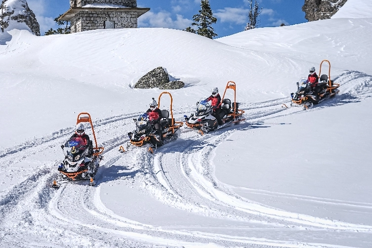 112 Acil Çağrı Merkezi'ne yapılan ihbar üzerine harekete geçen ekip, yaralının konumunu belirledikten sonra kar motorlarıyla yaralının bulunduğu alana gidiyor. İlk müdahalesi yapılan yaralı, kar motorundaki sedyeyle güvenli alana getirilerek sağlık personellerine teslim ediyor.