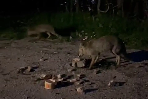 Uludağ'ın zirvesinden dönüşe geçen bir vatandaş, iki tilkinin yemek aramak için yola çıktığını gördü.