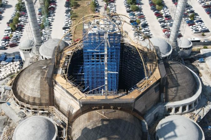 Bursa’nın en büyük ibadet merkezlerinden birisi olması planlanan, aynı zamanda külliye olarak hizmet vermesi hedeflenen caminin büyük kubbesi de tamamlandıktan sonra kaba inşaatı bitmiş olacak.