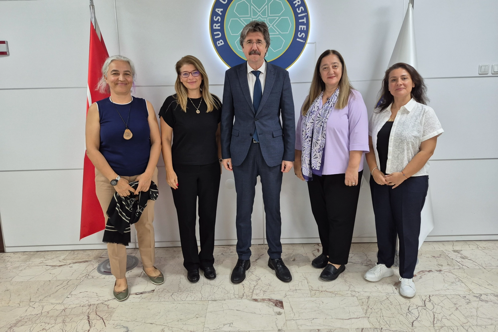 BUÜ Rektörü Prof. Dr. Ferudun Yılmaz, üniversite tarihinde ilk kez böyle bir destek almayı başaran akademisyenleri ağırlayarak teşekkür etti. Eğitim Fakültesi ve İİBF öğretim üyelerinin hazırladığı, Avrupa Komisyonu tarafından Jean Monnet Modülü kapsamında desteklenmeye hak kazanan "Problem-posingwith AI throughChildren’s Picture Booksabout EU Values" (PACE) başlıklı projede birlikte görev yapan Prof. Dr. Çiğdem Arslan, Prof. Dr. Şehnaz Baltacı, Prof. Dr. Hülya Kartal, Prof. Dr. Çiğdem Aydın Koyuncu ve Prof. Dr. Yasemin Ertan ziyarette hazır bulundu.