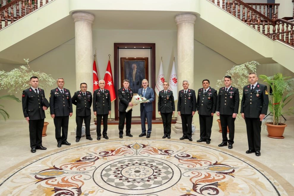 Valilik makamında gerçekleşen ziyarette İl Jandarma Komutanı ve beraberindeki heyet, Vali Ayyıldız'a çiçek takdiminde bulundu.