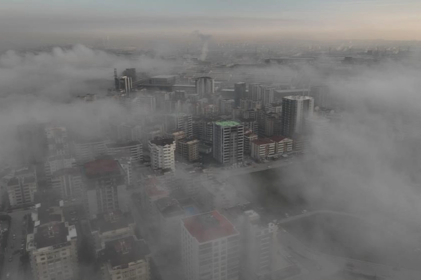 Tamamen sis bulutlarının altında kaybolan şehrin dron ile çekilen masalsı görüntüleri izleyenleri mest etti.