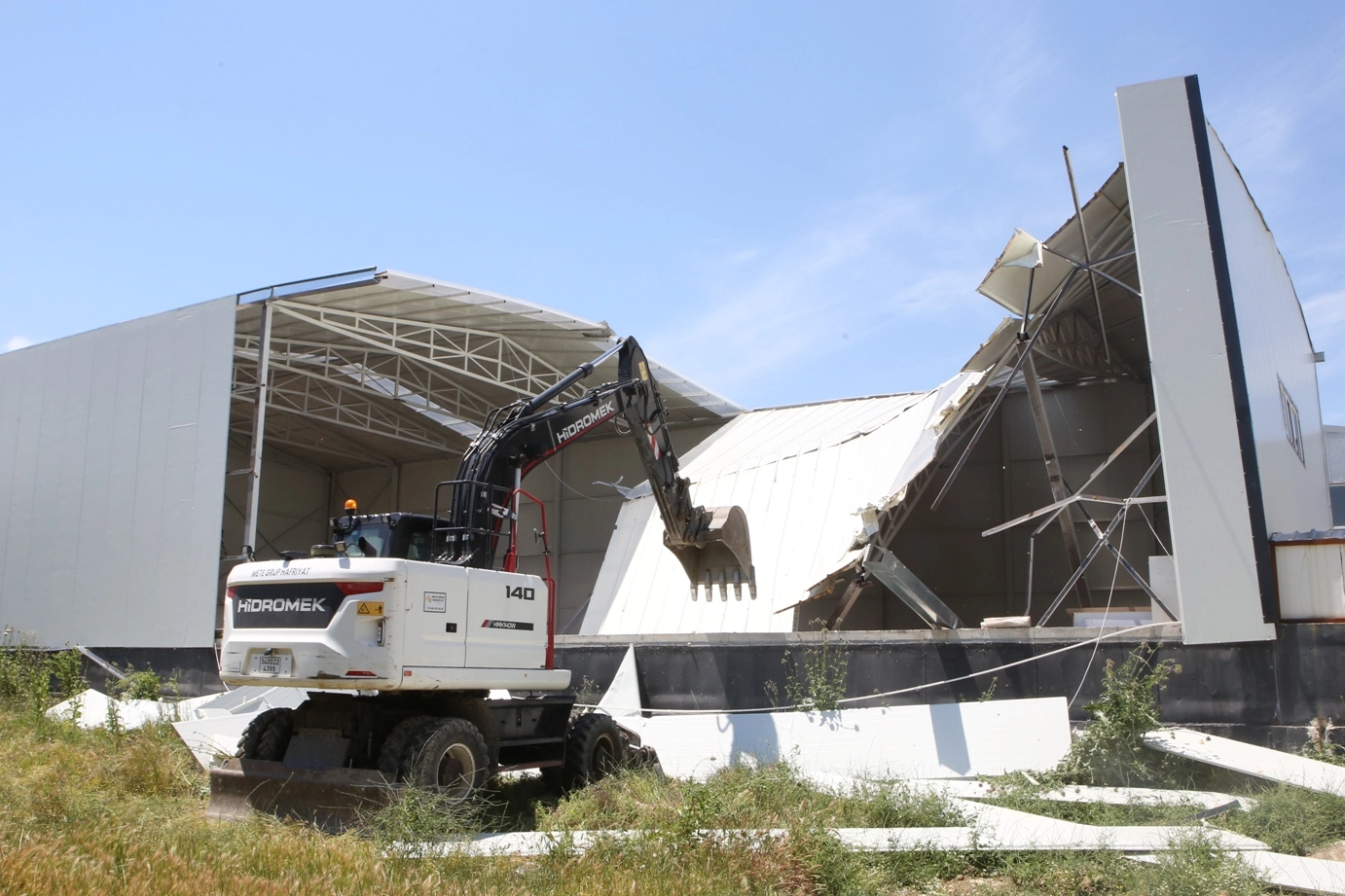 Yapılan tebligatlara uyulmaması üzerine belediye ekipleri kaçak iş yerini kısmen yıktı.