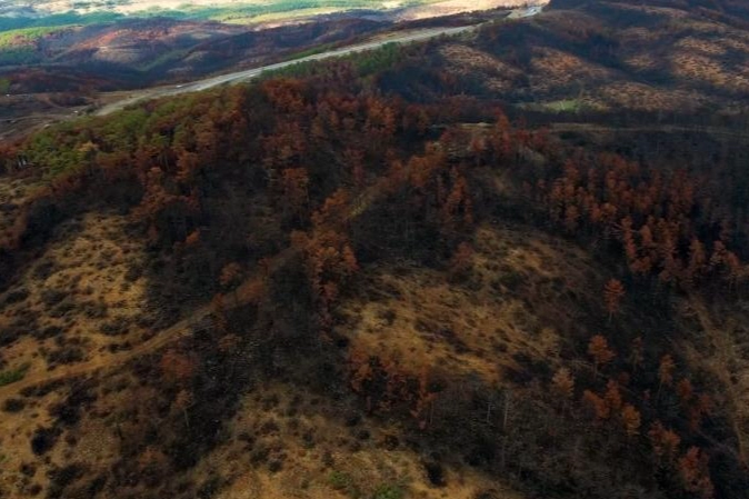 Yangın sonrası bölgenin havadan görüntülendiği çalışmalarda, yanmış ağaçların kontrollü şekilde kesildiği ve sahadan kaldırıldığı kameralara yansıdı. Yetkililer, kesim işlemlerinin tamamen yeniden orman kurma ve güvenli saha oluşturma çalışmaları kapsamında yapıldığını vurguladı.