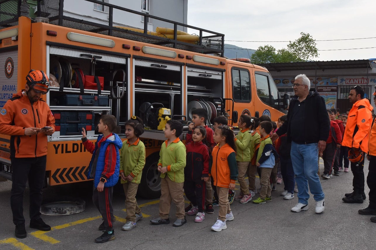 Yıldırım Belediyesi, afetler ve afetlere hazırlık alanlarında farkındalık oluşturacak çalışmalarına devam ediyor. Deprem başta olmak üzere afetler konusunda çocukların bilinçlendirilmesi için afet farkındalık eğitimlerine devam eden Yıldırım Belediyesi Afetİşleri Müdürlüğü ekipleri, öğrenci ve öğretmenlerine çök-kapan-tutun hareketi, okuldan güvenli tahliye, afettoplanma alanı, deprem anında ve sonrasında doğru hareket etme yöntemleri konularında teorik ve uygulamalı eğitim verdi. Öğrenciler eğitime yoğun bir ilgi gösterirken, Okul Müdürü Altan Özgür de Yıldırım Belediyesi ve Başkan Oktay Yılmaz’a teşekkür etti.