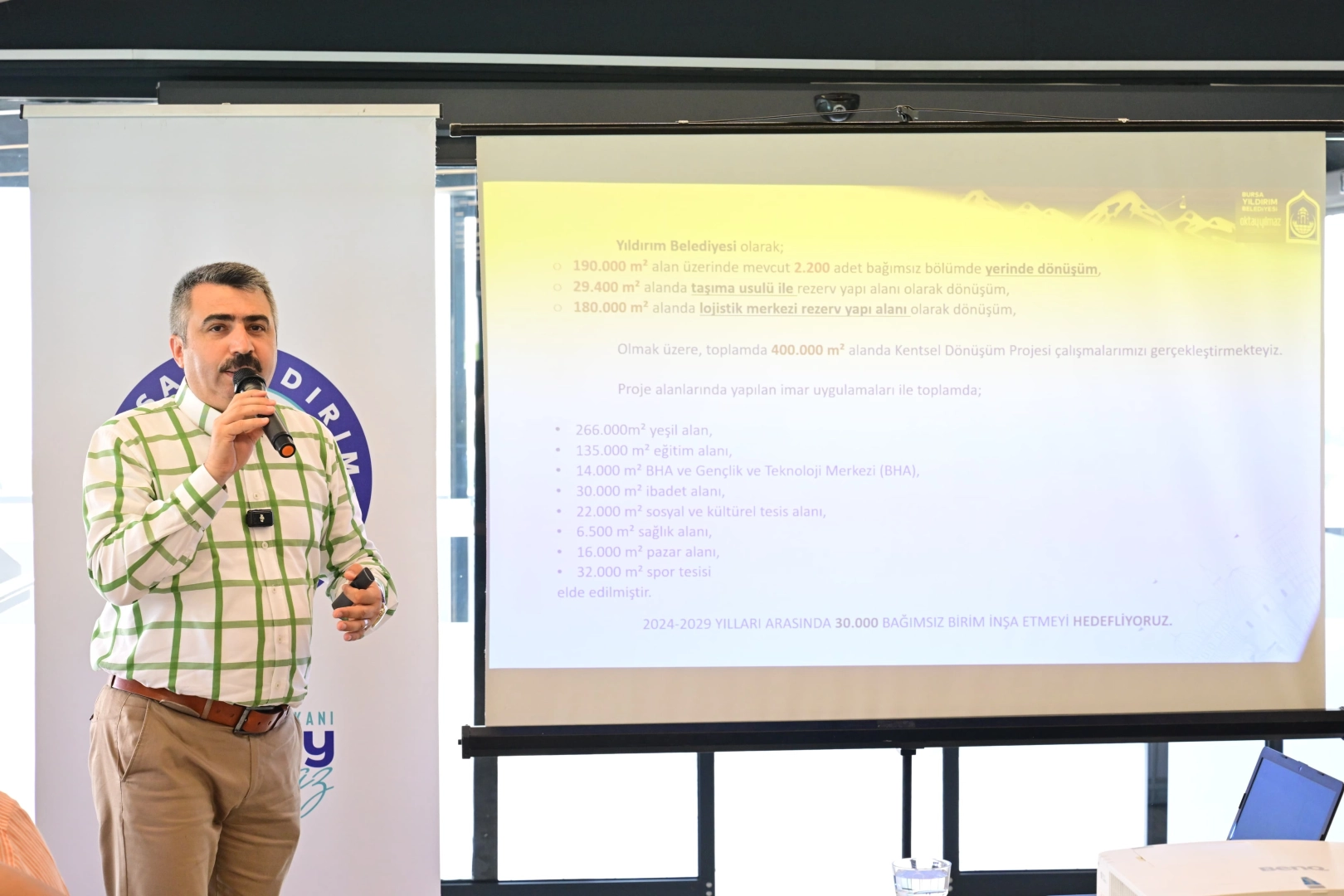 Yıldırım Belediyesi’nin kentsel dönüşüm alanında Bursa’nın en tecrübeli kurumu olduğunu ve örnek teşkil ettiğini vurgulayan Başkan Yılmaz, "Bu başarının temelinde ise ortak akıl ve istişare kültürü yatıyor. Projeye başlarken uzlaşma oranını en üst seviyeye çıkarmaya çalışıyoruz. Yine kent dinamikleri, akademik odalar, sivil toplum kuruluşları, sektör temsilcileriyle istişare içerisinde kararlar alıp uyguluyoruz. Bitişik nizamdan ayrık nizam yapılara geçerek yeni bir kültür oluşturuyoruz. Bu projeleri belirlerken de bölgesel özellikleri ve beklentileri esas alıyoruz. Bugüne kadar 190 bin metrekare alandaki 2 bin 200 bağımsız bölümde yerinde dönüşüm 29 bin 400 metrekare alanda ise taşıma usulü dönüşüm gerçekleştirdik. Bu toplantıyı bundan dolayı çok önemsiyor ve yeni iş birliklerine temel teşkil etmesini umuyorum" diye konuştu.