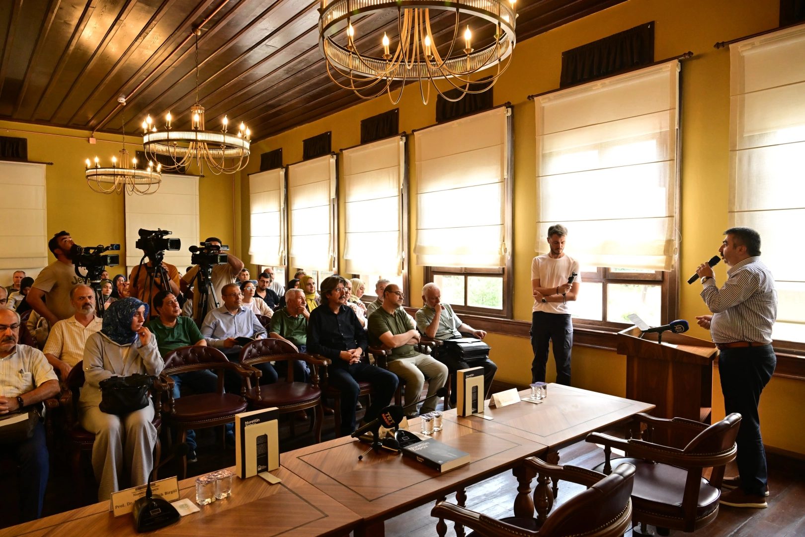 Nurettin Topçu’nun öğrencisi olan ve sohbetlerinde yer alan Prof. Dr. Mustafa Kara ise “Gerçek dindarlık, vatanseverlik ve insanlık kavramlarını kendinde birleştiren büyük idealist, din dünyamızı hislerle hurafelerden sıyırıp iradenin hayatına yükseltti. Milliyetçiliği ahlâk ve fazilet davasının eşdeğeri yaptı. İnsanlık idealini, İslâm’ın ruhundan ayrılmaz, bölünmez bir cevher halinde tanıttı. Bütün büyükler gibi o da zaman ve asırlar geçtikçe daha iyi anlaşılacaktır. Bugün burada tanıtımını gerçekleştirdiğimiz nadide eser, onun daha iyi anlaşılmasına katkı sağlayacaktır” ifadelerini kullandı. Etkinlik sonunda katılımcılara “Yıldırım’ın Huzurunda Bir Mütefekkir: Nurettin Topçu” kitabı hediye edildi.