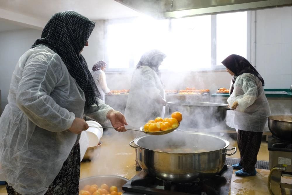 İlçede kendileriyle koordineli çalışan 32 kadın derneği bulunduğunu aktaran Özdemir, "Kadınlarımız kendi malzemeleriye geliyor gıda mühendisleri desteği ve eşliğinde üretim yapıyorlar. Buradaki üretim belirli standartlarda oluyor. Ham madde Nilüfer'in kırsalında Nilüfer çiftçisinden alınıyor" dedi.