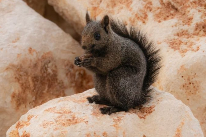 Bursalı doğa fotoğrafçısı Ömer Ahu tarafından Tunceli'nin Pülümür ilçesinde görüntülenen melanistik sincap, diğer sincaplarla kıyaslandığında koyu ve siyah kürküyle göze çarptı.