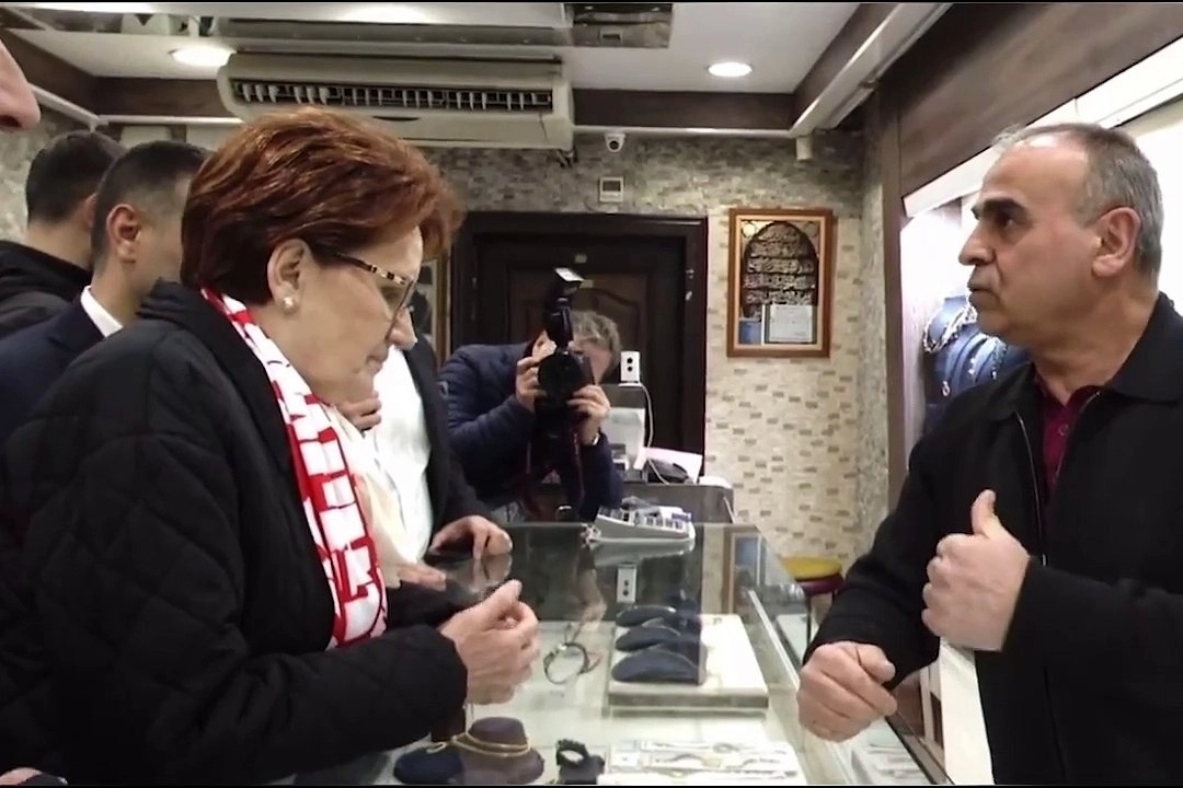 Bursa’da esnaf ziyaretlerinde bulunan İYİ Parti Genel Başkanı Meral Akşener ile bir kuyumcu arasında yaşanan diyalog sosyal medyada gündem oldu.