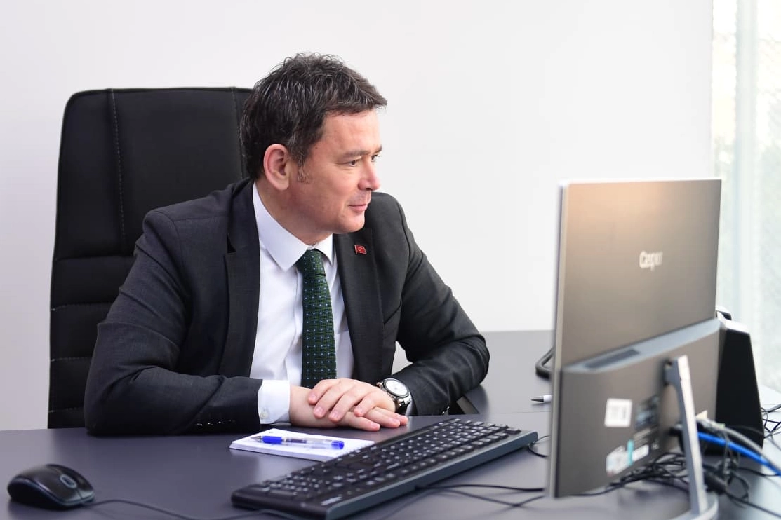 Basın Yayın ve Halkla İlişkiler Müdürlüğü bünyesinde hizmet veren merkezde yoğun bir şekilde çalışmalarını sürdüren personele destek olan Başkan Erkan Aydın, ekranın başına geçerek çağrıları aldı.