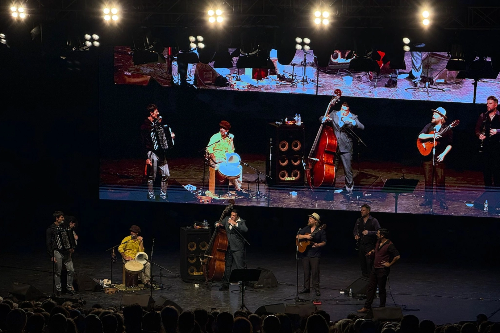 Gecede ilk sahneyi alan Barcelona Gipsy Klezmer Orkestrası'nın enstrümanlarla seslendirdiği eserler, beğeni topladı.