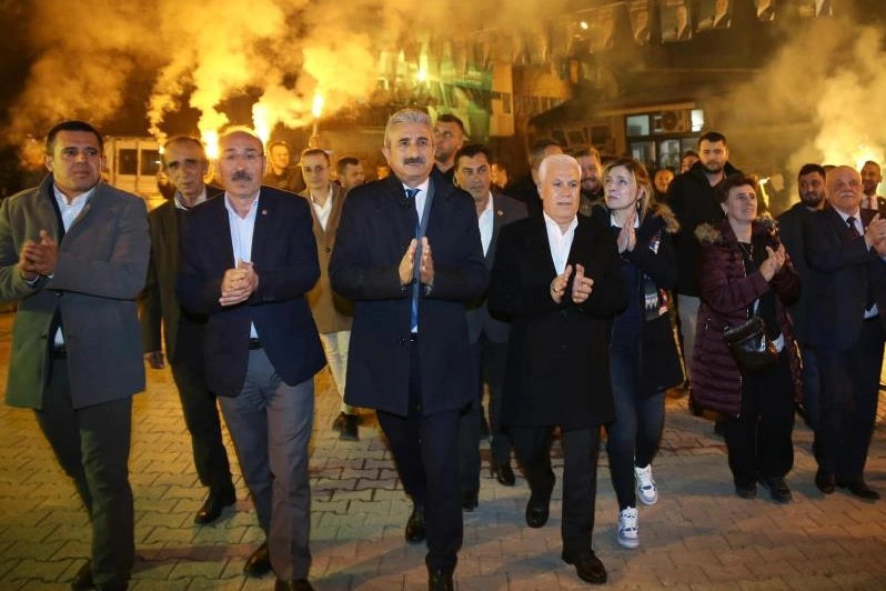 CHP İl Başkanı Nihat Yeşiltaş, CHP İznik İlçe Başkanı Sadullah Eşiyok, CHP İznik Belediye Başkan Adayı Ayan Özer’in de katıldığı ziyarette Bozbey ve ekibi meşalelerle karşılandı.