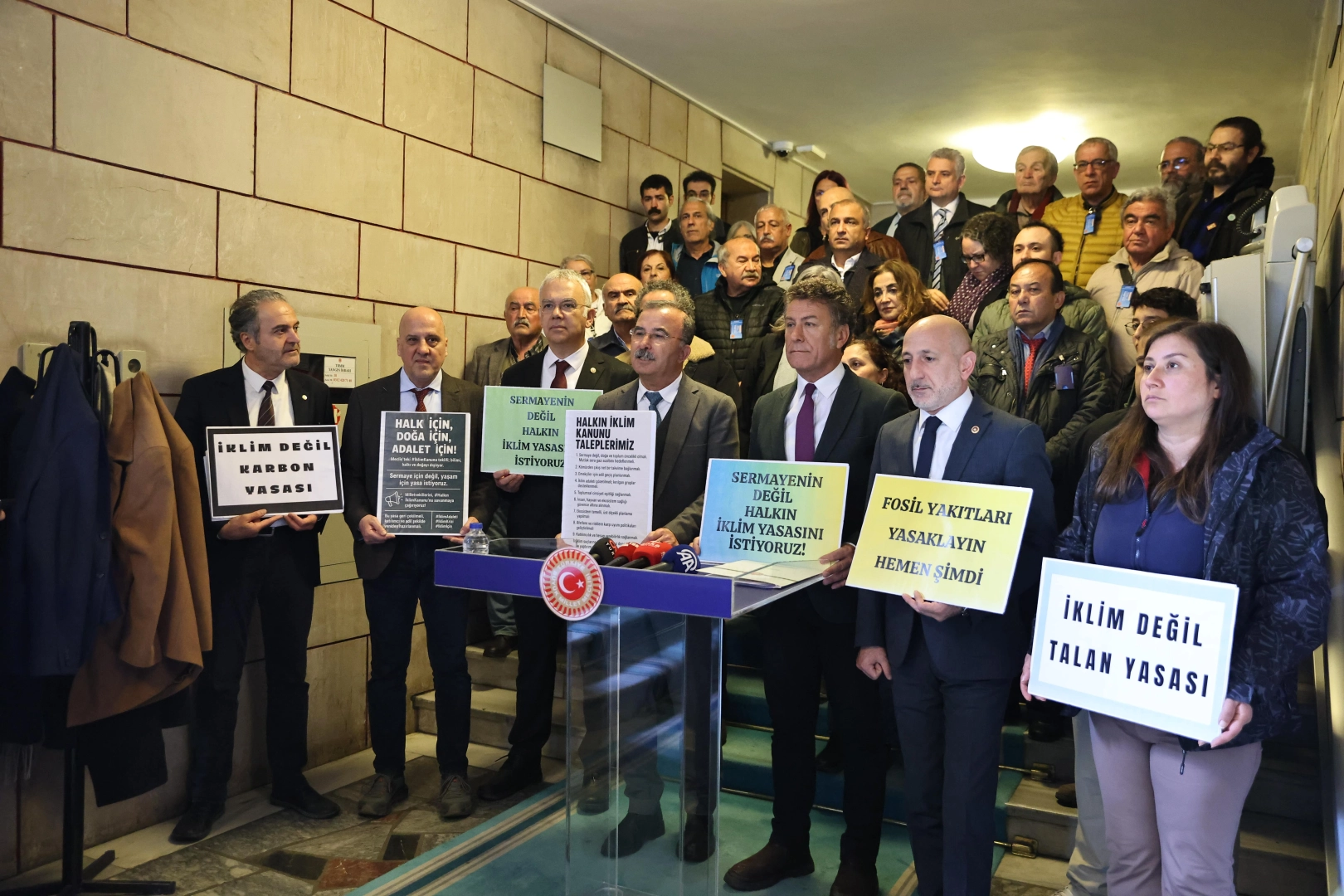 Emisyon ticaret sisteminin emisyon azaltımına hizmet etmeyeceğini vurgulayan Sarıbal, “Sera gazı emisyonlarını azaltmayı hedeflemeyen, düşük karbon fiyatlarına dayalı bir ETS, emisyonları sadece ticaret aracına dönüştürür. Teklif, fidan dikmek gibi sembolik uygulamalarla, gerçek emisyon azaltımı yerine bedel ödemekten kaçma yolunu açıyor. Ağaçları, ormanları katlet, sonra fidan dik gibi göstermelik uygulamalarla masumlaştırdıkları bu kanun, geleceğe ihanettir. Gelirler, sadece şirketlerin yararına kullanılacak. ETS gelirleri, sadece özel sektörün yeşil dönüşümüne ayrılıyor. Oysa iklim adaletinin gereği, iklim değişikliğinin etkilerinden mağdur olan bireylerin kayıp ve zararlarını karşılayacak mekanizmalar olmalıdır. Bu gelirler, sadece şirketlere değil, toplum yararına kullanılmalıdır. İklim krizini çözmek için, şirketlerin değil, toplumun yararına bir iklim yasası gerekir. Sermaye 2026 yılında kendine göre ihracatını, karını sağlayabilmek için bu kanunun çıkmasını dayatmaktadır. İktidar 22 yıldır bu ülkede orman, su, dağ, mera, kışlak ne varsa, tümünü paraya, kara, sermayeye vermiş durumda. Önce Ekokırım Yasası çıkarılmak zorundadır. Suç kapsamına alınacak bütün eylemleri ortaya koyacak ve hukuki gerekçelerini sunacak bir kanun zorunluluğu vardır. Karbon ticaretinin yasal olarak yapılmasını sağlayacak kanunu kabul etmiyoruz, geri çekilmesini, bilimsel, doğaya uyumlu bir yasa getirilmesini istiyoruz” ifadelerini kullandı.