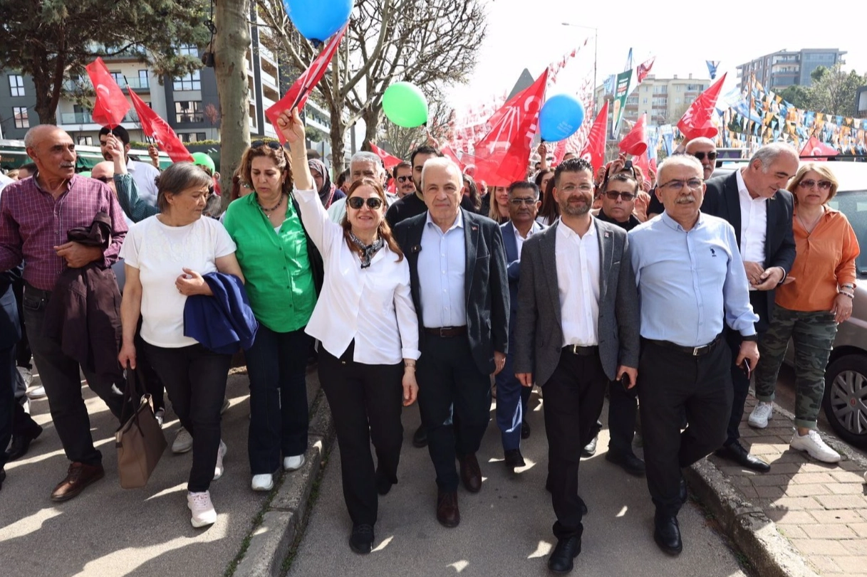 Şadi Özdemir, konuşmanın ardından, Seçim Koordinasyon Merkezi önünde toplanan coşkulu kalabalıkla birlikte FSM’den Podyumpark’a yürüdü.