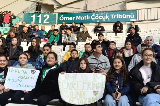 Maç saatinin yaklaşmasıyla birlikte Atatürk Spor Kompleksi Matlı Stadyumu’na getirilen çocuklar, Ömer Matlı Çocuk Tribünü’nde Bursaspor coşkusuna ortak oldu. Yeşil beyazlı ekibin, sahasında Aliağa Futbol A.Ş. ile karşılaştığı ve sahadan golsüz eşitlikle ayrıldığı mücadelede 90 dakika boyunca Bursaspor’a destek veren çocuklar, heyecan dolu anlar yaşadı.