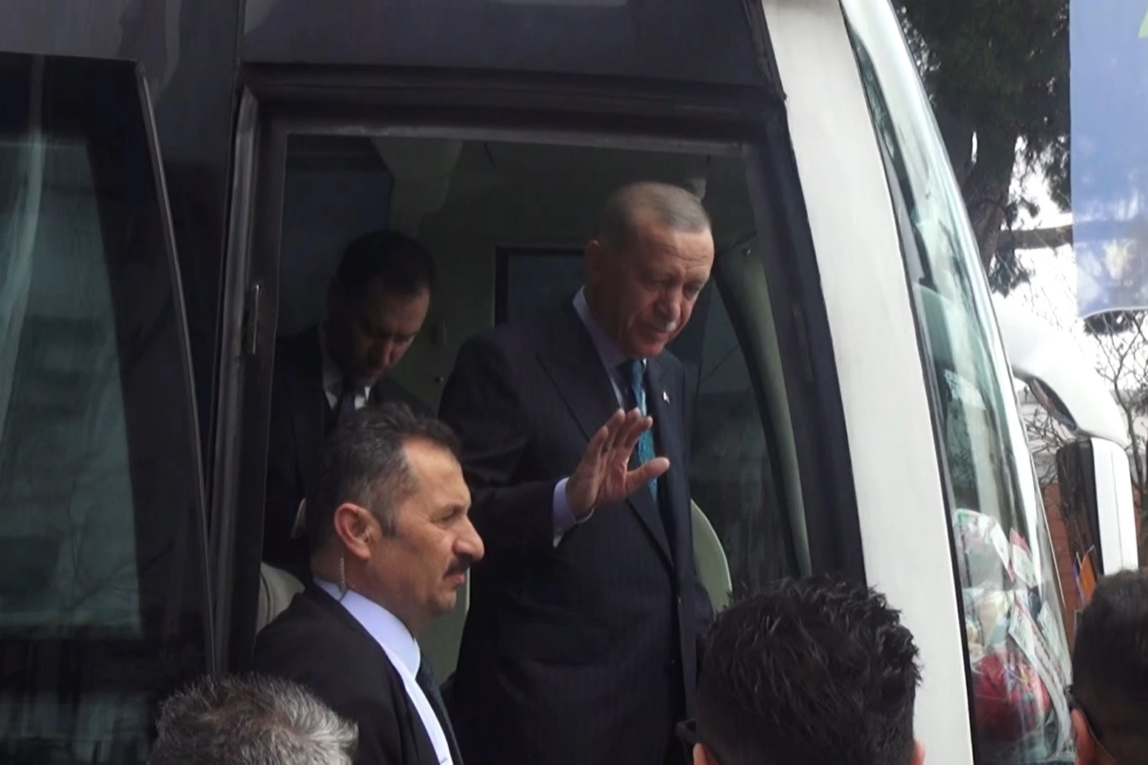 Cumhurbaşkanlığı otobüsü ile alandan ayrılan Erdoğan, kendisini bekleyenleri selamlarken, çocuklara da Togg'un oyuncak arabası ile oyuncak bebek dağıttı.