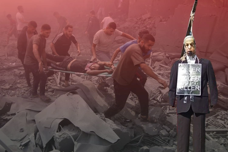 Protestocular, İsrail Başbakanı Binyamin Netanyahu'ya da tepki gösterdiler. Netanyahu'nun temsili idamı gerçekleştirilerek, Filistin'e yönelik saldırıların sona ermesi talep edildi.