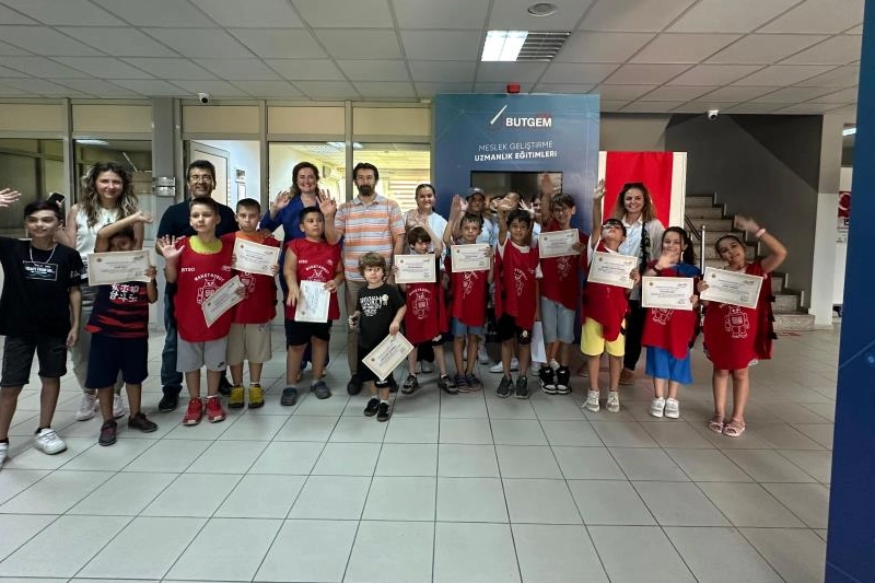 Ağustos ayının ilk haftasında başlayan ve dört dönem halinde gerçekleştirilen yaz kursları, bu yıl da yoğun ilgi gördü. BUTGEM’in 16 yıl içinde düzenlediği eğitimlerden bugüne kadar yaklaşık 3 bin çocuk faydalanırken, kursları tamamlayan tüm öğrencilere katılım belgesi verildi. Maket Robot Kursu’na katılan öğrenciler mekanik el becerilerini geliştirmenin yanı sıra temel programlama bilgisiyle tanışarak robotik dünyasına ilk adımlarını attı. Origami-Kâğıt Sanatları kursunda renkli kâğıtlarla çeşitli şekiller tasarlayan çocuklar, sabır ve dikkatlerini geliştirirken hayal güçlerini de kâğıda yansıttılar. Genç Mekanisyen eğitiminde ise ahşap parçalarla çalışan öğrenciler, kendi tasarımlarını ortaya çıkararak üretim ve parça motifleme deneyimi yaşadı.